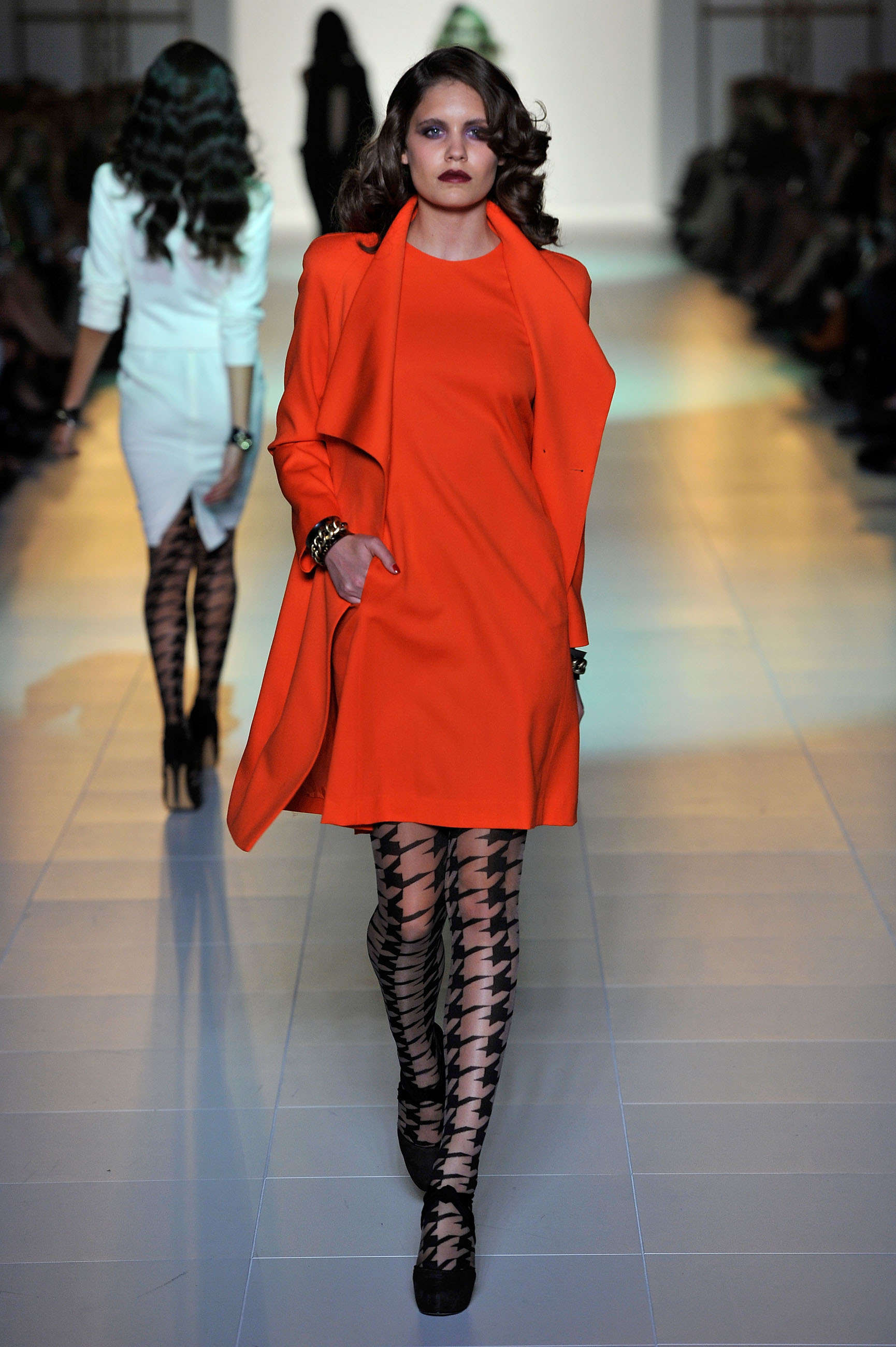 Carla Zampatti opened the show with her bold yet burnt orange garments followed by the boundary pushing Romance was Born with florals pointed power shoulders and sequins to boot. An essence of sixties was felt with RWB but with an edge of 2011. A huge trend I found throughout the show was FUR, LACE AND LEATHER all mixed together or one with the other. Plenty of black, lots of mini’s for winter collection’s and of course embellishment. Oh yes you are all wanting to know about Sass & Bide… well nothing really blew me away except the brushed metal gold necklaces and belts, the rest of the collection was pretty safe, a bit of shiny fabric here and natural colours there and some snake print pants which I am sure will grace the legs of some fashionable fashionistas.