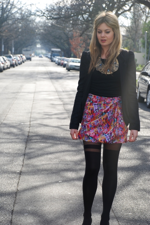 YSL Shoes, Villa Blazer, Asos necklace, Alldressed Up skirt, House of Holland stockings