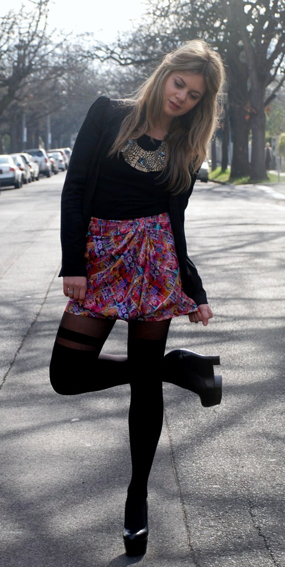 Ahh, I want those tights! And the skirt is gorgeous (: