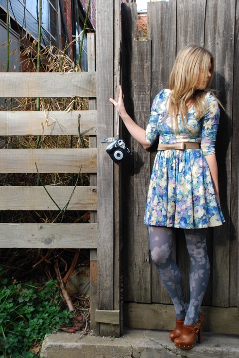 As I sit here scoffing down a red velvet cup cake (not the best thing to eat, considering my Singapore Holidays is weeks away) I ponder to my self…if it was two years ago and a clairvoyent showed me a photo of the future, of me (today) wearing this, what would I have thought??? I know for sure I would have said.. ‘ummm why the heck did I mix florals? and… are those CLOGGS on my feet? and is that a.. Polaroid camera?? its all about digital Jess- you are so behind the times!!’