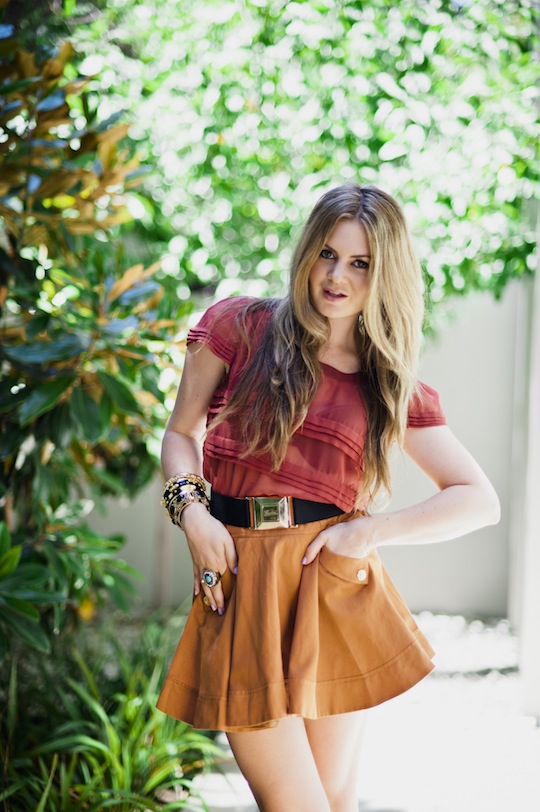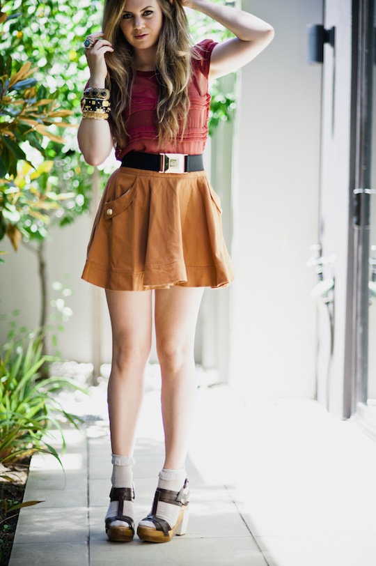 Skirt: ASOS, Shoes: AllSaints, Top: Mossman, Jewellery: Samantha Wills, Snood: ASOS, Socks: Levante, Belt: Gucci