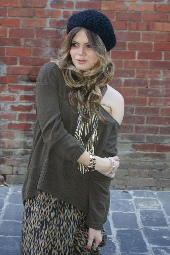 Dress: Witchery (A different way of wearing it! Buy here) Knit: Witchery, Hat: Witchery (Buy Here) Necklace: Topshop, Shoes: ASOS (Buy Here)