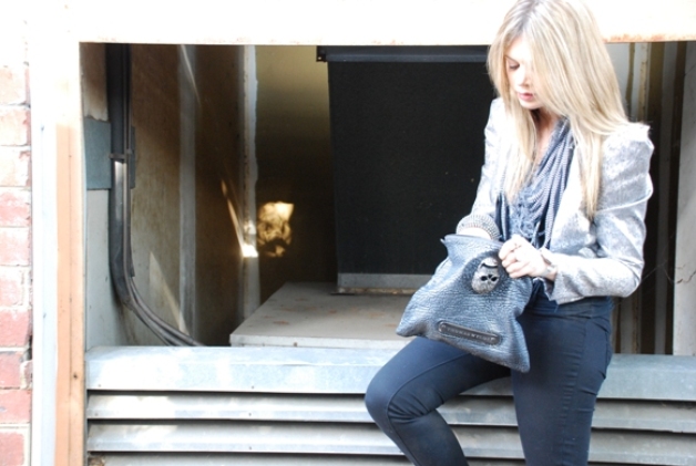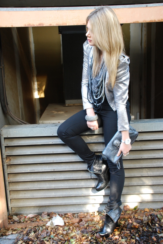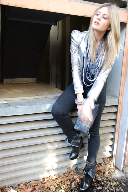Asos Blazer, Georgina Goodman ankle boots from Scanlan & Theodore, Villa pants, Yamila Guedez neckpiece, Thomas Wylde Scull clutch