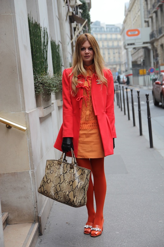 Coat: Alannah Hill, Dress: Philosophy by Alberta Ferreti, Shoes: MiuMiu, Stockings: Voodoo, Bag: Fendi