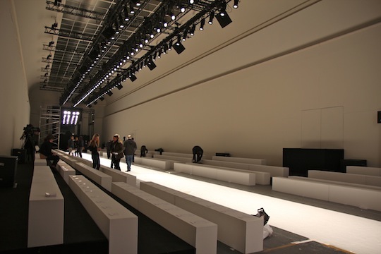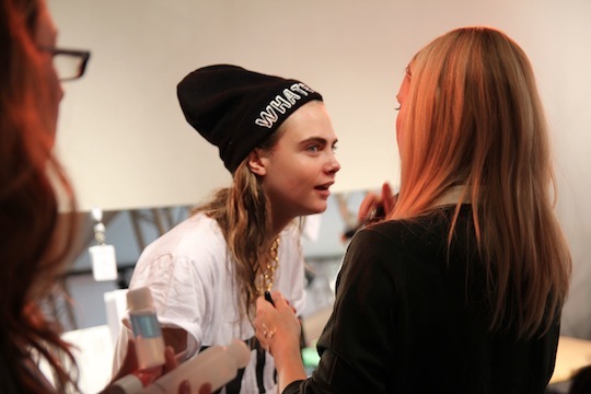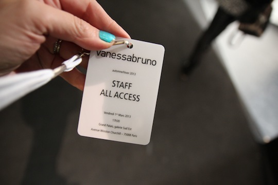 I had another awe struck moment when Cara Delevingne walked into the hectic room in her ‘whatever’ beanie which was to soon come off as she lead the team of models down the runway. When Steph (my fellow Aussie from Watermelon crush blog) and I saw a glimpse of the empt stage, tingles came over us as we knew that in less than two hours time, the vibe in that room would be electric and a feast full of fashions finest would be seated to see Vanessa Bruno showcase her A/W13 collection.