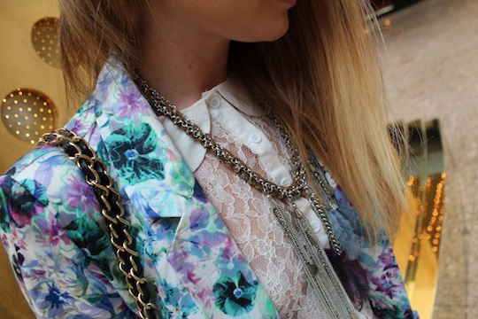 Your printed suit is so nice with the lace top 🙂