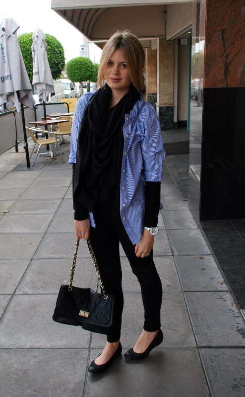 I am wearing and All Dressed Up shirt, Camilla and Marc leggings, Chanel Flats, LV scarf makes yet another appearance!